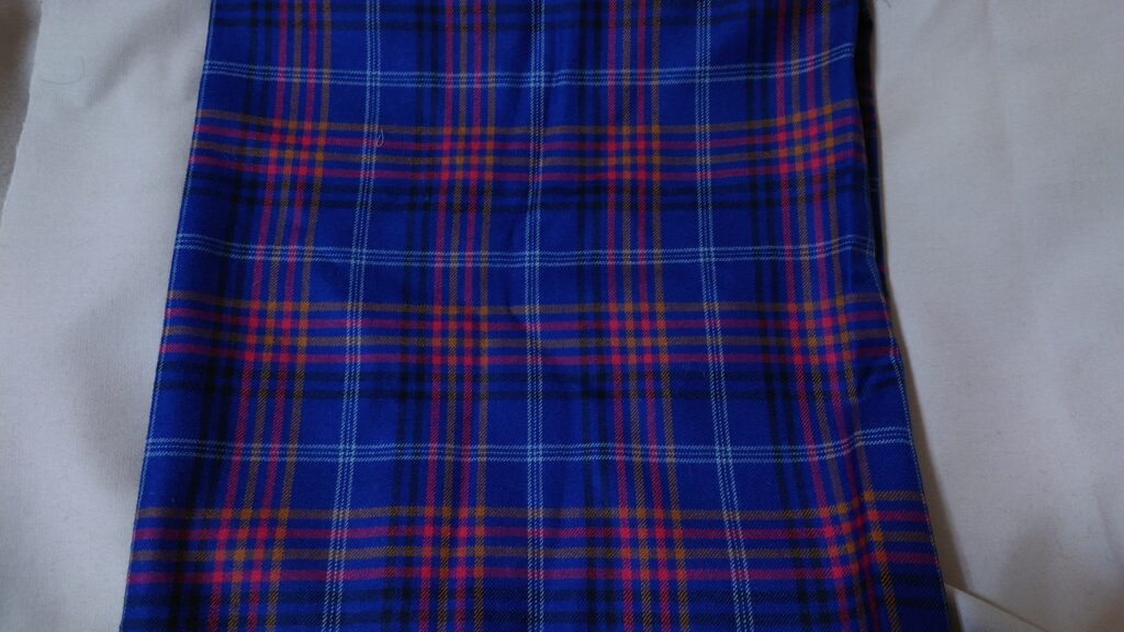 ↓生地の写真です。チェックの色は、地の部分はもうちょっと紺よりです。